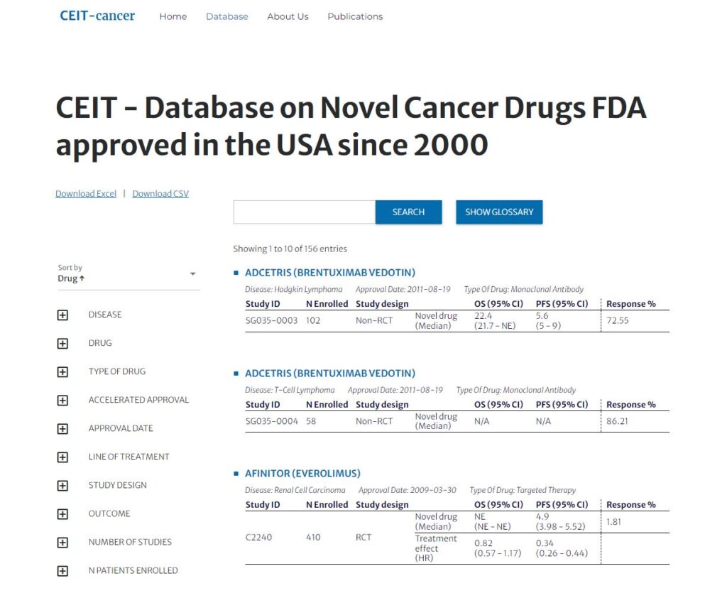 The Comparative Effectiveness of Innovative Treatments for cancer (CEIT-Cancer) project aims to provide a comprehensive and transparent overview of the early evidence supporting the approval of novel cancer therapies in the US. By collecting and assessing approval documents for all FDA-approved cancer drugs, the project hopes to improve evidence-based decision-making in policy and practice, and facilitate translation of the analyses into research and patient care. The project’s database is accessible through a dedicated website. More information on the CEIT-Cancer website.