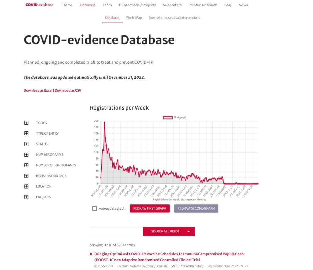 COVID-evidence: a living database of trials on interventions for COVID-19 Swiss National Science Foundation